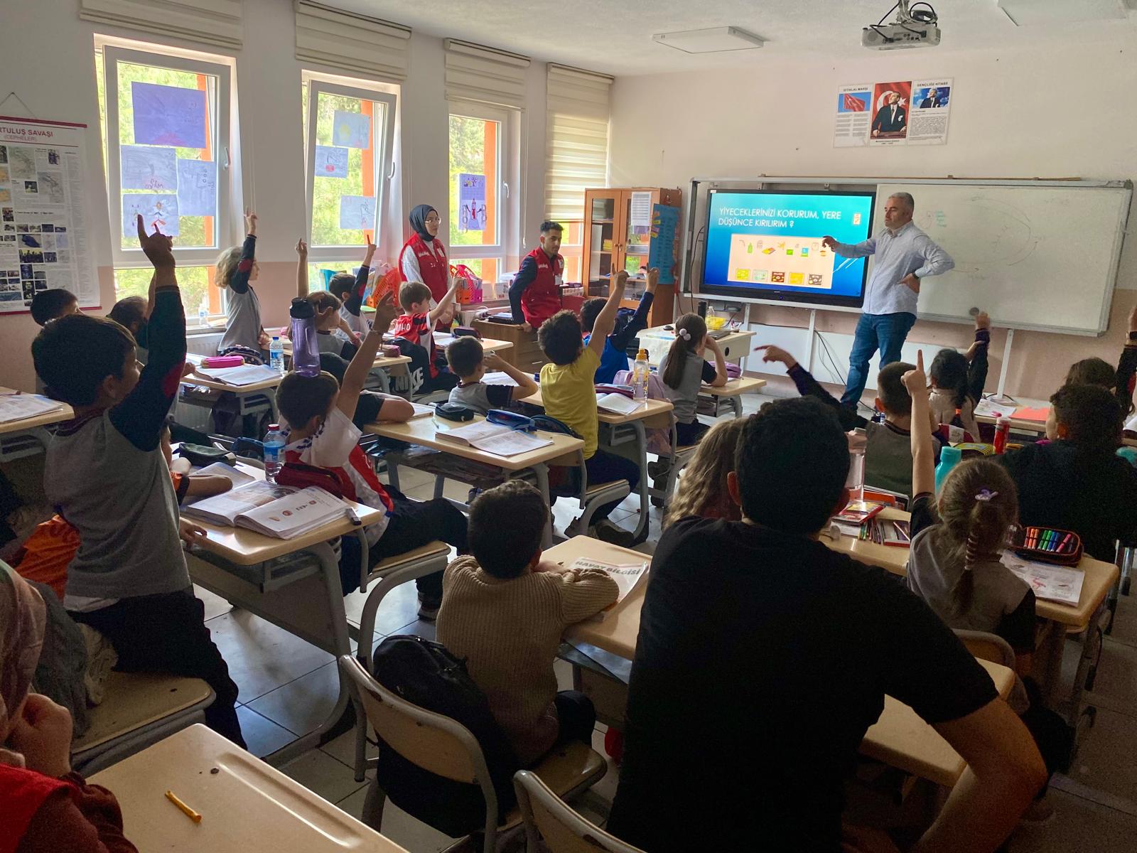 27 Mayıs 2025 tarihinde Sakarya İlkokulu’nda, Bolu Abant İzzet Baysal Üniversitesi Çevre Koordinatörlüğü ile Kızılay iş birliği içerisinde ‘’Sıfır Atık Projesi’’ kapsamında farkındalık etkinliği düzenlendi. Bu etkinliğin amacı öğrencilere çevre bilinci kazandırarak geri dönüşümün önemini anlatmak ve sürdürülebilir yaşam alışkanlıkları kazandırmaktı. Henüz ilkokul düzeyinde olan öğrencilerin küçük yaştan itibaren çevre bilinci ile büyümesi, geri dönüşüm faaliyetlerinin farkında olması ve gündelik yaşamlarında sıfır atık alışkanlıkları edinebilmeleri hem gelecek nesillerimiz hem de dünyamız açısından oldukça önemli ve öncelikli bir konudur. Bu amaç doğrultusunda çevre koordinatörlüğü personeli Yüksek Çevre Mühendisi Ferudun Nalbat ile Kızılay gönüllüleri öğrencilere atıkların doğru şekilde ayrıştırılması, geri dönüşümün çevreye katkıları ve günlük hayatta uygulanabilecek sıfır atık adımları hakkında bilgilendirme yaptı. Bunun yanı sıra öğrenciler gerçekleştirilen uygulamalı etkinliklerle geri dönüşümün pratik yönlerini deneyimledi. Yapılan etkinlik ile ilkokul öğrencilerinin çevreye duyarlı bireyler olarak yetişmeleri, sorumluluk ve farkındalık duygularıyla sıfır atık projesini hayatlarında benimseyebilmeleri konusunda önemli bir ilk adım atıldı.